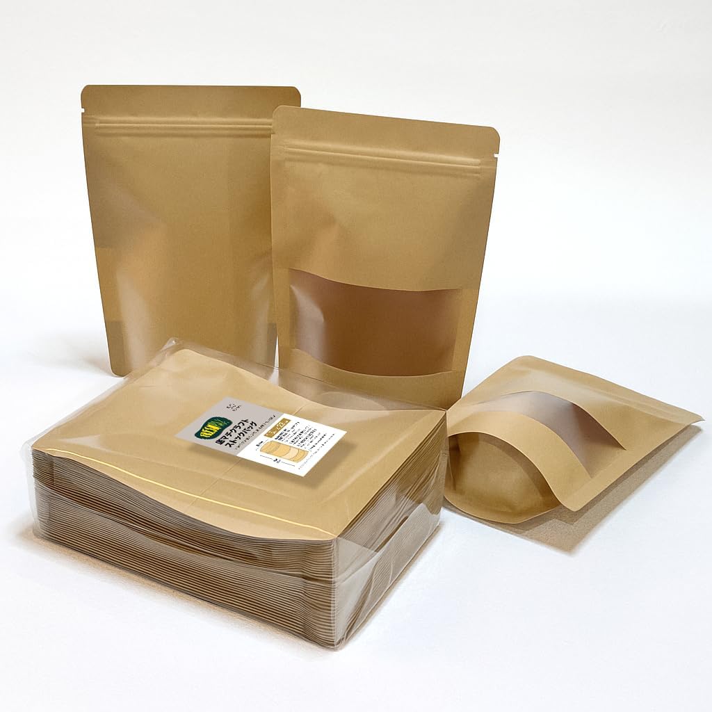 • ✔ 実用性と美しさを兼ね備えたデザイン ナチュラルなクラフト紙と半透明の窓が特徴のジッパー付きスタンドパウチです。中身が一目で確認できるので、コーヒー豆、プロテイン、ドライフルーツなどの保存に最適です。視認性が高く、商品を美しく魅せることができます。