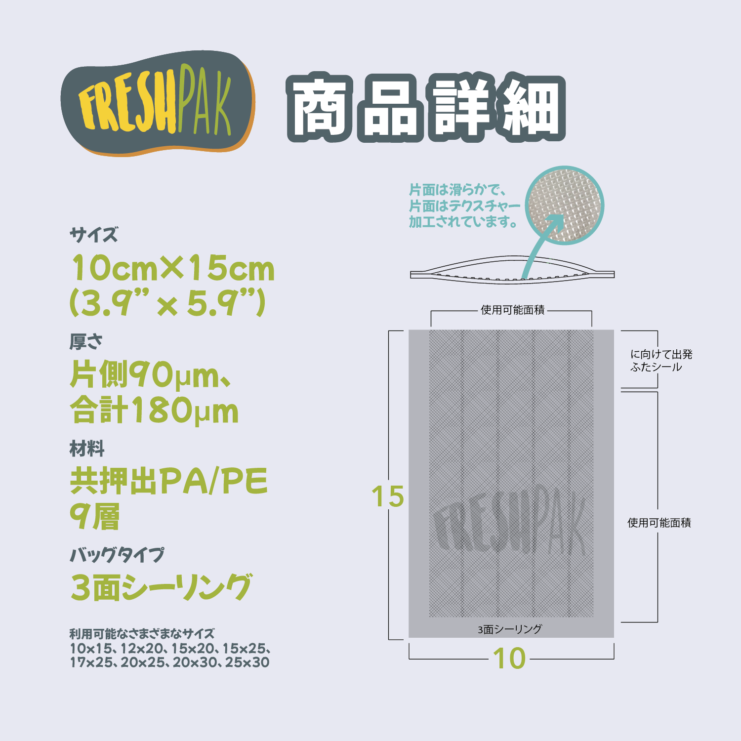• 🟢 多用途 ▶ 真空吸引により、パックを密封することで、食品の酸化・変質することを抑えます。細菌の繁殖を防ぎことにより、食材の鮮度を延長することができます。 FRESHPAKの真空バッグは耐高温・耐低温により、包装した食材を冷蔵庫に入れて冷凍・冷蔵したり、電子レンジに入れて加熱したり、低温真空調理に使用したり、様々な用途がございます。また沸騰したお湯で調理することもできます。また、レストラン、レストラン、ホテルの厨房、肉屋、寿司屋、魚屋、冷凍食品メーカー、日本と西洋の菓子店でも使用できます。注:電子レンジで加熱に使用する場合は、加熱中の熱放散のために真空バッグに小さな口を開いてください。