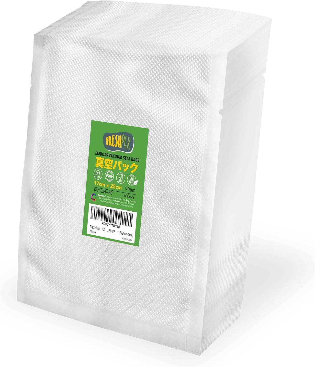 - 🟢 多用途 ▶ 真空吸引により、パックを密封することで、食品の酸化・変質することを抑えます。細菌の繁殖を防ぎことにより、食材の鮮度を延長することができます。 FRESHPAKの真空バッグは耐高温・耐低温により、包装した食材を冷蔵庫に入れて冷凍・冷蔵したり、電子レンジに入れて加熱したり、低温真空調理に使用したり、様々な用途がございます。また沸騰したお湯で調理することもできます。また、レストラン、レストラン、ホテルの厨房、肉屋、寿司屋、魚屋、冷凍食品メーカー、日本と西洋の菓子店でも使用できます。注:電子レンジで加熱に使用する場合は、加熱中の熱放散のために真空バッグに小さな口を開いてください。